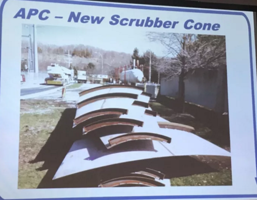 另一位是我們上次去美國參觀的一座焚燒廠的技術人員介紹了他們的一次最新的維修。這是Covanta旗下的美國紐約州的Onondago焚燒廠,由于我們是從事煙氣凈化系統的,我重點聽了一下他們煙氣區(qū)域的技改。這個廠在我上次去的時候,的確略顯破敗,已經持續(xù)運行了20來年了。說是技改,其實主要是對出渣系統、膨脹節(jié)、吸收塔錐體、除塵器灰斗、SNCR、DCS和CEMS的更新??吹竭@里,中國的土豪們是不是覺得老美好土,這么晚才上SNCR。