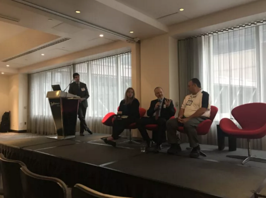 老美的會議形式我覺得比國內的會議形式略有不同。通常一個議題由一位大咖發(fā)言,同時會有3-4位大咖就坐一邊,等發(fā)言的大咖結束后,會共同探討這個話題,坐在一邊的大咖發(fā)言較為簡短,他們也會一起回復在座聽眾提出的問題。這種形式下,我認為其交互性更強一些,而分享的觀點也會持不同的見解,會帶給聽眾更多角度的思考。
