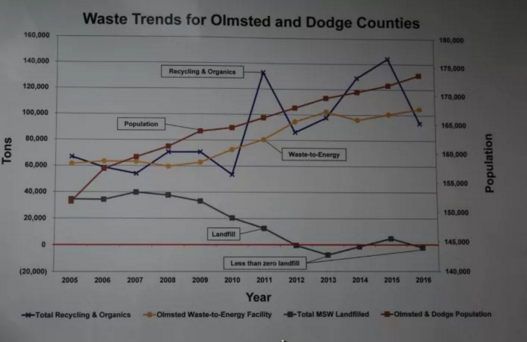在會場有2位發(fā)言人講述了自己如何改進和提升焚燒廠的面貌和性能。一位是我們隨后去參觀的明尼阿波利斯的Hennepin焚燒廠,發(fā)言人是位老先生。從他如數家珍的ppt照片來看,他任職這個廠的年頭非常之久。他除了介紹這個焚燒廠的發(fā)展歷史以外,主要介紹了一個重要的技改提升,為了美觀將一面墻的門移動到了另一面墻(因為原來一面墻面對一個棒球場,從棒球場那邊看過來形象不佳),修改了垃圾車進出的通道,提高了工作效率。這個工作在中國人眼里看來幾乎是不值一提,因為中國正在建設大量的焚燒廠,我們正在滿足城市處理垃圾的主要功能,還無暇顧及門開在那邊是否美觀,通道如何布置可以提高多少效率,在我看來,這就是新進暴發(fā)戶和老鄉(xiāng)紳的區(qū)別: