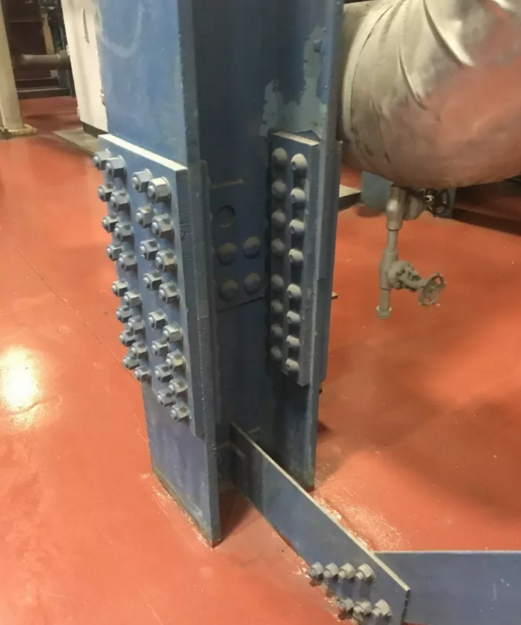 在參觀的閑暇之余,出于對鋼結構的關心,我們還看了一下他們的結構件的制作質量。老美的鋼結構清一色是高強度螺栓連接的高級貨,而我們國內大部分煙氣廠商為了控制成本,采用焊接,定位螺栓+焊接的項目則較多。