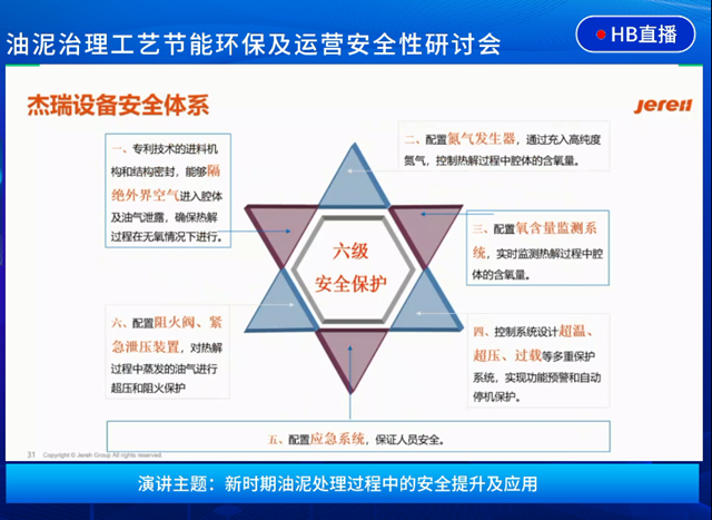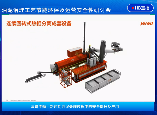 本次研討會杰瑞環(huán)保工藝工程師張巖也帶來了《新時期油泥處理過程中的安全提升及應(yīng)用》的主題分享:杰瑞環(huán)保擁有連續(xù)回轉(zhuǎn)式熱相分離、連續(xù)螺旋式分析分離、調(diào)制分離、油罐機械清洗、廢棄物回注等多種核心技術(shù),以及物料預(yù)處理及均質(zhì)化等配套技術(shù),針對不同客戶需求、不同領(lǐng)域的含油廢棄物,以最合適的分類分質(zhì)方式,提供高標(biāo)準(zhǔn)低成本、高效率的一體化的含油廢棄物及工業(yè)廢泥治理方案。