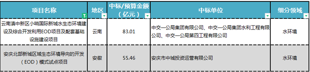 此外,隨著國家層面針對EOD的政策文件不斷出臺,EOD乘著東風迅速起飛。3月,兩大EOD項目總投資額高達138億元,分別被中交和當?shù)貒Y斬獲。