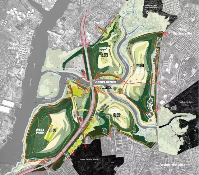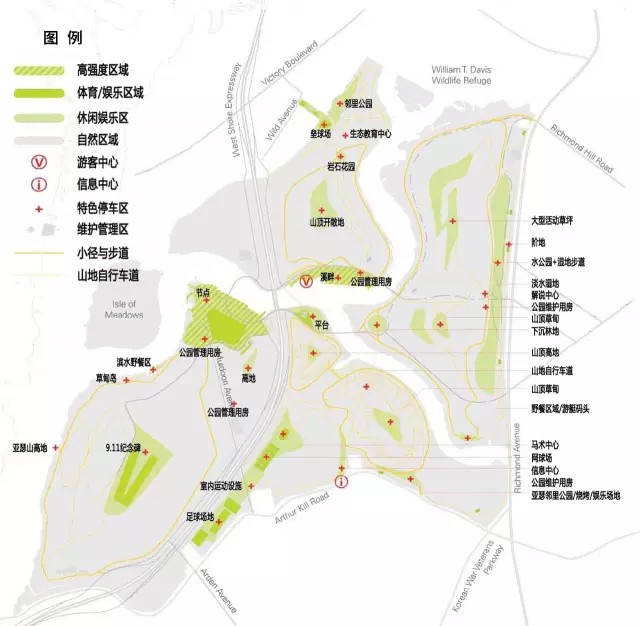 公園的建設(shè)項(xiàng)目以提升斯塔滕島形象,創(chuàng)造宜居、宜樂(lè)、宜教的城市空間為目標(biāo)。發(fā)展項(xiàng)目遵循以下六項(xiàng)原則: