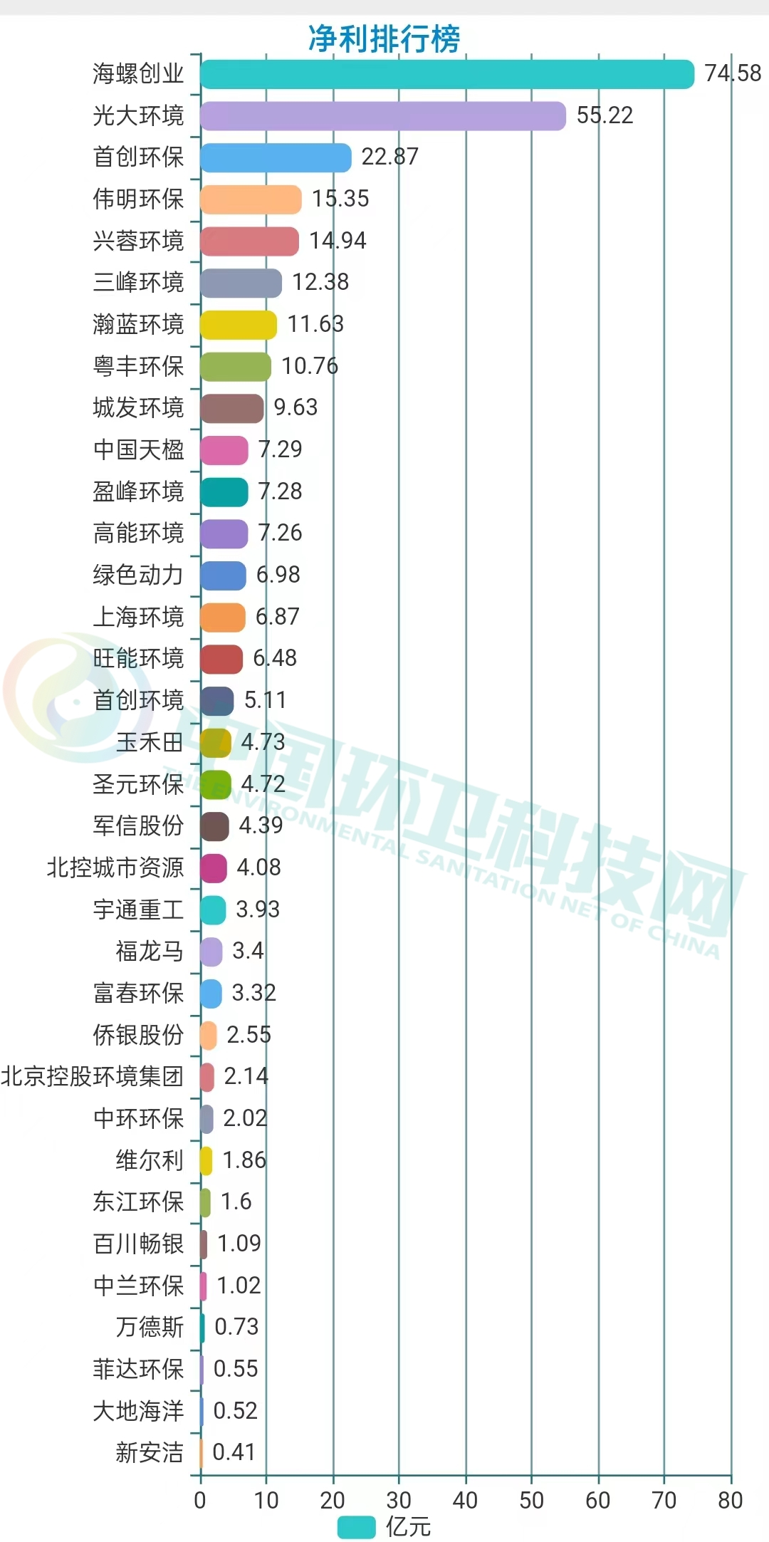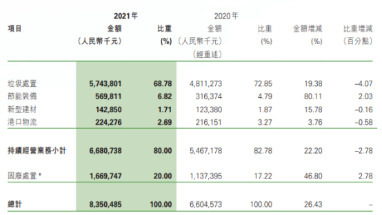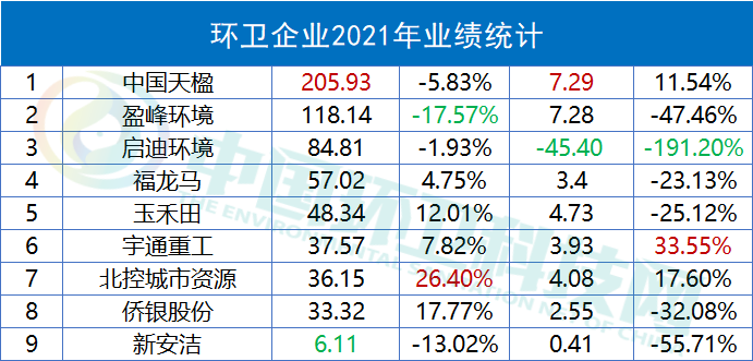 工程建設(shè)方面,建成投運(yùn)項(xiàng)目91個(gè),建成完工項(xiàng)目8個(gè);新開工項(xiàng)目51個(gè),完工并交付的環(huán)境修復(fù)服務(wù)6個(gè)、垃圾分類服務(wù)1個(gè)、EMC項(xiàng)目4個(gè)以及EPC項(xiàng)目9個(gè)。2021年,光大環(huán)境累計(jì)處理生活垃圾43,452,000噸,處理危廢及固廢269,000噸,提供綠色電力22,271,602,000千瓦時(shí),可供18,559,000個(gè)家庭一年使用,相當(dāng)于節(jié)約標(biāo)煤8,909,000噸,減少二氧化碳排放20,211,000噸。同期處理污水1,698,710,000立方米,處理垃圾發(fā)電廠滲濾液9,635,000立方米,減少COD排放740,000噸。在凈利榜中,海螺創(chuàng)業(yè)以74.58億元的歸母凈利潤雄踞榜首。海螺創(chuàng)業(yè),2013年12月在香港聯(lián)合交易所主板上市(股票代碼:00586.HK),是一家提供節(jié)能環(huán)?!耙粩堊印苯鉀Q方案的大型企業(yè)集團(tuán),產(chǎn)業(yè)涉及節(jié)能、環(huán)保、新型建材、港口物流四大類,業(yè)務(wù)涵蓋生活垃圾處理、固廢危廢處置、黑臭水體治理、新型建材、港口貿(mào)易、余熱發(fā)電、高效節(jié)能立磨等。細(xì)分業(yè)務(wù)板塊,2021年在垃圾處置領(lǐng)域,海螺創(chuàng)業(yè)營收57.44億元,同比增長19.38%,占全部營收比重為68.78%。▲ 海螺創(chuàng)業(yè)分業(yè)務(wù)收入年報(bào)披露,2021年,海螺創(chuàng)業(yè)垃圾發(fā)電業(yè)務(wù)板塊共接收生活垃圾約540萬噸,處置生活垃圾約456萬噸,上網(wǎng)電量約16.65億度,按照入爐量計(jì)算的平均噸上網(wǎng)電量約為365度,較去年同比提高19度。目前,海螺創(chuàng)業(yè)已成功取得貴州清鎮(zhèn)、重慶巫山、吉林洮南、河北圍場、越南春山等13個(gè)項(xiàng)目以及并購的10個(gè)項(xiàng)目,共計(jì)23個(gè)焚燒發(fā)電項(xiàng)目,涉及產(chǎn)能規(guī)模約567萬噸/年。3月30日,海螺創(chuàng)業(yè)分拆海螺環(huán)保成功在香港聯(lián)合交易所主板上市。日前,又宣布擬分拆海創(chuàng)綠能于上海證券交易所獨(dú)立上市。在大部分上市企業(yè)都實(shí)現(xiàn)盈利的背景下,博世科和啟迪環(huán)境成為唯二虧損的企業(yè),前者虧損5.15億,后者的虧損更是達(dá)到了驚人的45.4億。博世科,是一家位于廣西的環(huán)保企業(yè),2015年,在深交所創(chuàng)業(yè)板上市,業(yè)務(wù)領(lǐng)域重點(diǎn)為工業(yè)環(huán)境治理、城鄉(xiāng)環(huán)境、土壤環(huán)境修復(fù)、固廢處置與危廢處置、智慧環(huán)衛(wèi)、環(huán)境服務(wù)業(yè)等。對于虧損原因,博世科在年報(bào)中披露主要是受到疫情反復(fù)、經(jīng)濟(jì)下行、行業(yè)競爭加劇、市政項(xiàng)目結(jié)算和老舊項(xiàng)目回款不及預(yù)期等內(nèi)外部發(fā)展阻力綜合影響。啟迪環(huán)境,這個(gè)曾經(jīng)的固廢領(lǐng)域龍頭企業(yè),最近頻頻登上環(huán)衛(wèi)科技網(wǎng)的頭條,對于它已無須過多贅述??梢哉f,它的虧損早就在業(yè)內(nèi)人士的預(yù)料之中。而對于虧損原因,啟迪環(huán)境在年報(bào)中這樣解釋:“系公司對現(xiàn)有資產(chǎn)、項(xiàng)目進(jìn)行全面梳理,部分項(xiàng)目擬戰(zhàn)略性退出,公司根據(jù)《企業(yè)會(huì)計(jì)準(zhǔn)則》規(guī)定對相關(guān)資產(chǎn)計(jì)提減值所致。不過,該虧損對公司當(dāng)前經(jīng)營及償債能力未產(chǎn)生重大影響?!?/span>具體來說,原因包括對已停建項(xiàng)目、擬退出項(xiàng)目計(jì)提資產(chǎn)減值;對資產(chǎn)運(yùn)營效率較低、不能持續(xù)運(yùn)營和公司整體戰(zhàn)略涵蓋不到的項(xiàng)目進(jìn)行退出、轉(zhuǎn)讓處置;對部分款項(xiàng)回收存在實(shí)質(zhì)性障礙的應(yīng)收賬款、其他應(yīng)收款、長期應(yīng)收款及應(yīng)收票據(jù)計(jì)提信用減值損失等。如今,博世科于2021年完成混改,廣環(huán)投成為其控股股東。啟迪環(huán)境與城發(fā)環(huán)境的合并雖然存在客觀上的“不確定性”,混改終究會(huì)完成。我們也希望完成混改后的兩家企業(yè),能夠迅速走上正軌,扭虧為盈。天楹、盈峰領(lǐng)跑,唯宇通、北控實(shí)現(xiàn)雙增這36家上市企業(yè)中有9家公司主營業(yè)務(wù)為環(huán)衛(wèi)板塊,中國天楹、盈峰環(huán)境和啟迪環(huán)境領(lǐng)跑營收榜,中國天楹、盈峰環(huán)境和玉禾田則在凈利榜上名列前茅。中國天楹,早在1994年就登陸深交所主板A股。其以垃圾焚燒發(fā)電、城市環(huán)境服務(wù)、環(huán)保裝備制造為壓艙石,打通了從前端清掃、中轉(zhuǎn)到分選、末端處置的城市環(huán)境服務(wù)全產(chǎn)業(yè)鏈。2021年,在城市環(huán)境服務(wù)板塊,其營業(yè)收入達(dá)到90.84億元,占全部營收比重44.11%。2021年,中國天楹中標(biāo)了烏海市濱河新區(qū)環(huán)衛(wèi)作業(yè)市場化運(yùn)營項(xiàng)目,如皋長江鎮(zhèn)道路、河道保潔、垃圾清運(yùn)及農(nóng)村環(huán)境整治服務(wù)外包項(xiàng)目,張北縣草原天路環(huán)境衛(wèi)生服務(wù)政府采購項(xiàng)目以及任丘市城鄉(xiāng)環(huán)衛(wèi)一體化農(nóng)村部分對外承包項(xiàng)目等多個(gè)城市環(huán)境服務(wù)項(xiàng)目,為境內(nèi)18個(gè)省市自治區(qū)35個(gè)城市提供了專業(yè)的城市環(huán)境服務(wù)。盈峰環(huán)境,于2000年在深交所主板A股上市。其主營業(yè)務(wù)包括