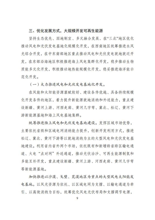 在“三北”地區(qū)優(yōu)化推動風電和光伏發(fā)電基地化規(guī)?;_發(fā),在西南地區(qū)統(tǒng)籌推進水風光綜合開發(fā),在中東南部地區(qū)重點推動風電和光伏發(fā)電就地就近開發(fā),在東部沿海地區(qū)積極推進海上風電集群化開發(fā)。