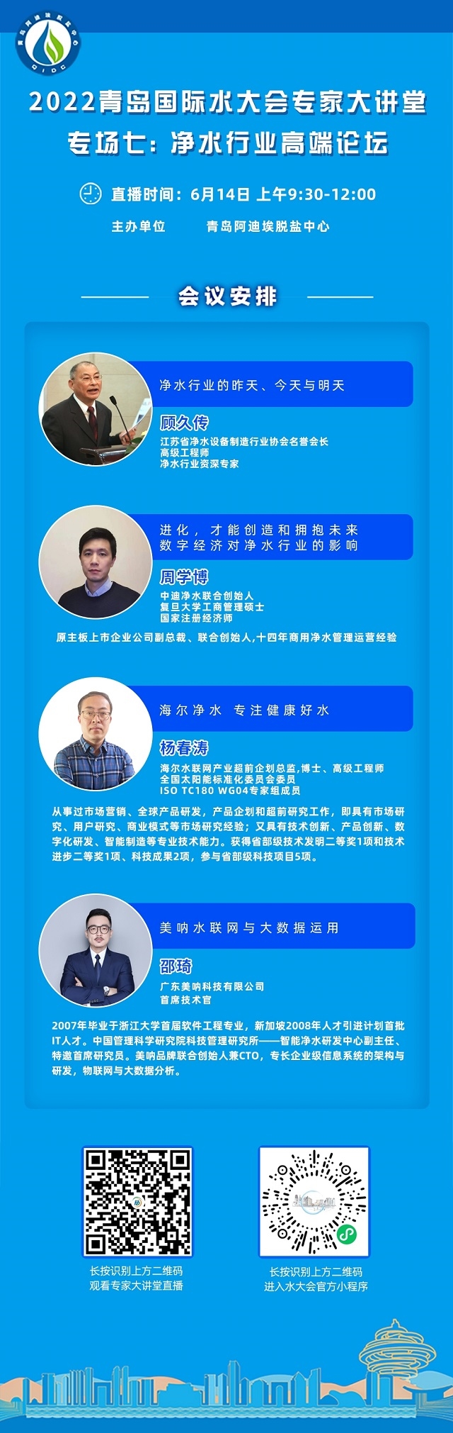“2022青島國(guó)際水大會(huì)專家系列大講堂”接力第七場(chǎng)——凈水行業(yè)高端論壇將于6月14日上午登陸環(huán)保在線!緊跟海水淡化、工業(yè)節(jié)水與污水資源化、城鎮(zhèn)水務(wù)、水資源可持續(xù)、水環(huán)境治理、膜材料等議題的熱度,凈水行業(yè)的當(dāng)下與未來(lái),誠(chéng)邀業(yè)界同仁共探共論。