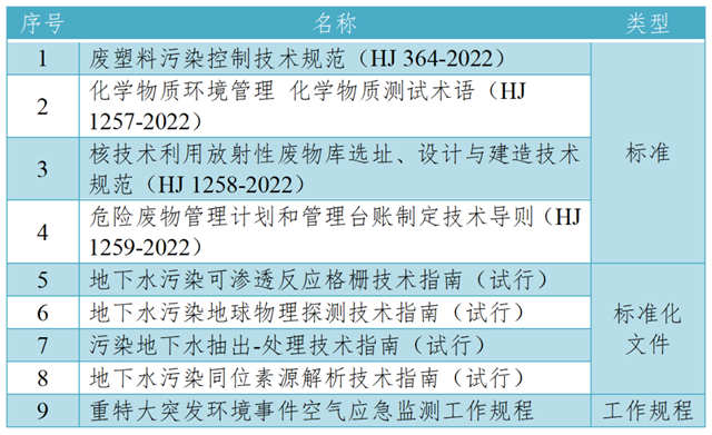 生態(tài)環(huán)境部發(fā)布4項國家生態(tài)環(huán)境標(biāo)準(zhǔn)、4項標(biāo)準(zhǔn)化文件和1項工作規(guī)程,具體見下表。
