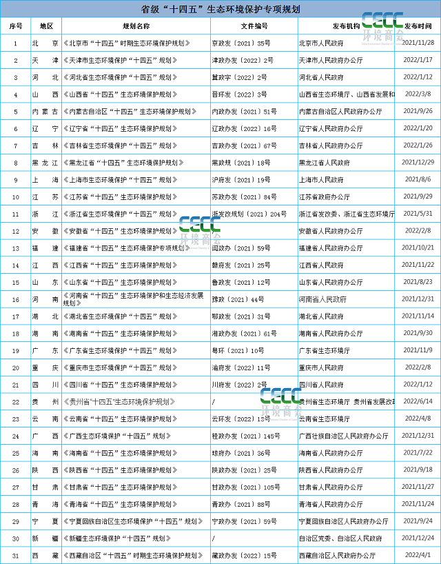 “十四五”生態(tài)環(huán)保相關(guān)規(guī)劃