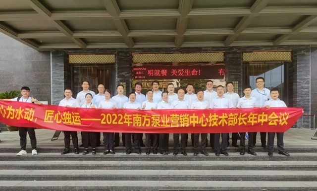 為加強事業(yè)部技術支持人員與銷售公司技術人員的溝通與聯(lián)系,提升銷售公司整體技術能力,南方泵業(yè)于2022年7月7日至9日開展“心為水動,匠心獨運”為主題的技術部長級年中會議。本次會議由大客戶綜合管理部部長陳劍鋒組織召開,各級銷售公司技術部長參會,并邀請南方泵業(yè)國內(nèi)營銷中心總監(jiān)馬燕紅女士蒞臨會議指導。