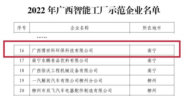 2022年7月12日,廣西壯族自治區(qū)工業(yè)和信息化廳發(fā)布2022年廣西智能工廠示范企業(yè)名單,博世科成功入選。自治區(qū)工信部門(mén)自2018年起組織開(kāi)展廣西智能工廠示范企業(yè)認(rèn)定工作,旨在篩選出一批智能制造標(biāo)桿示范企業(yè),帶動(dòng)全區(qū)智能制造水平提升。
