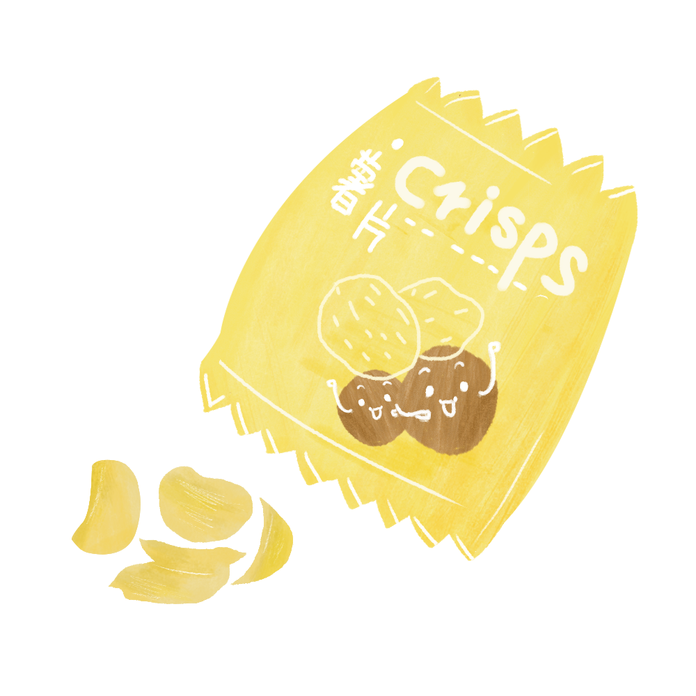 沒吃完的:吃剩的薯片——倒進(jìn)濕垃圾桶;包裝袋——扔進(jìn)干垃圾桶