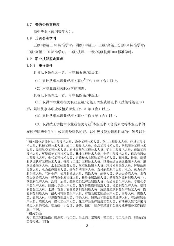 其中碳排放監(jiān)測員、碳排放核算員、碳排放核查員、碳排放交易員、民航碳排放管理員等五個(gè)工種共設(shè)五個(gè)等級,分別為:五級/初級工、四級/中級工、三級/高級工、二級/技師、一級/高級技師。其中,五級/初級工不分工種,統(tǒng)稱碳排放管理員五級/初級工。碳排放咨詢員共設(shè)三個(gè)等級,分別為:三級/高級工、二級/技師、一級/高級技師。五級/初級工40標(biāo)準(zhǔn)學(xué)時(shí);四級/中級工、三級/高級工分別80標(biāo)準(zhǔn)學(xué)時(shí);三級/高級工80標(biāo)準(zhǔn)學(xué)時(shí);二級/技師、一級/高級技師100標(biāo)準(zhǔn)學(xué)時(shí)。