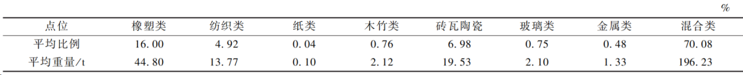 垃圾容重、含水率、熱值檢測結果見表1。垃圾組分、化學指標檢測結果見表2、3。