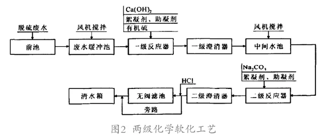 目前脫硫廢水軟化工藝主要有石灰(或燒堿)-碳酸鈉軟化工藝、離子交換工藝、硫酸鈉-石灰-煙道氣軟化工藝及鈉濾軟化工藝等。