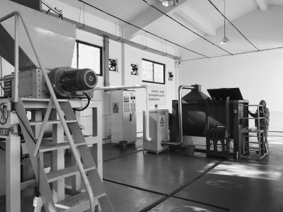江寧谷里街道垃圾分揀中心的廚余垃圾處理設(shè)備,廚余垃圾經(jīng)處理會(huì)制作成有機(jī)肥料。記者 江瑜 攝
