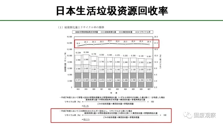 我們看下面這個日本的生活垃圾資源回收率計算公式,日本也才21%,我們能做到35%嗎?