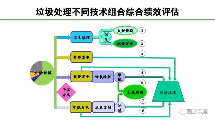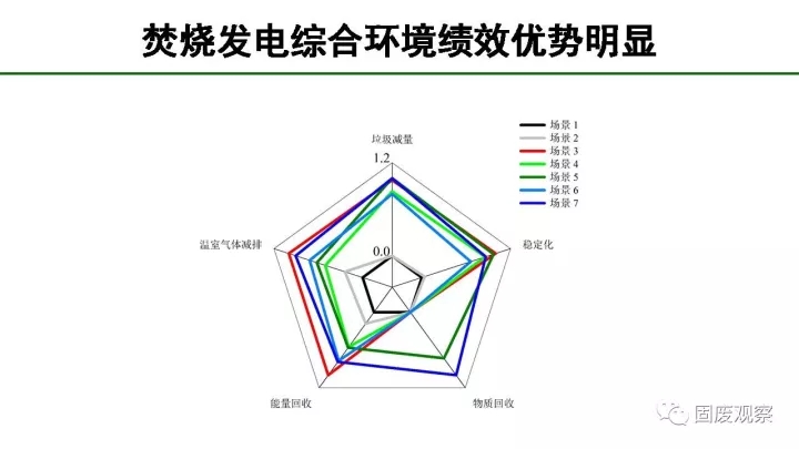 根據(jù)我們做的垃圾處理不同技術(shù)組合綜合績效評估,生活垃圾處理最理想的方式是通過焚燒、堆肥后最終讓垃圾回到土地利用,但是如果還無法為廚余找到土地回用出路的話,焚燒是目前階段最適合的方法,其在垃圾減量、溫室氣體減排、能量回收和穩(wěn)定化四個方面的綜合評估都遙遙領(lǐng)先。