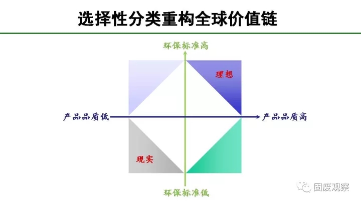垃圾中的可回收物通常只能降級利用,產(chǎn)業(yè)集聚度和技術(shù)含量低,處于全球價值鏈的低端。如果我們僅把這些可回收物當(dāng)作資源來考慮,為什么發(fā)達(dá)國家將產(chǎn)業(yè)鏈最低端的可回收物出口到我們國家,這種不公平的全球價值鏈,我們應(yīng)該重構(gòu)!