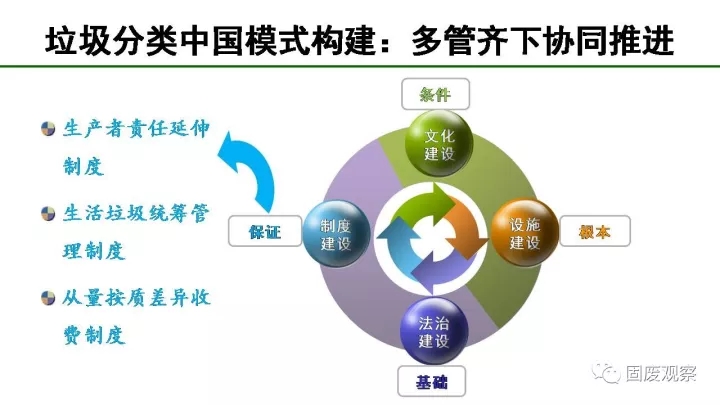 最后我們要多管齊下協(xié)同推進,我們要以法制建設(shè)為基礎(chǔ),以文化建設(shè)為條件,以制度建設(shè)為保證,以設(shè)施建設(shè)為根本。我也提出了三個制度去撬動垃圾分類工作,包括生產(chǎn)者責(zé)任延伸制度、生活垃圾統(tǒng)籌管理制度、從量按質(zhì)差異收費制度。通過精巧的制度設(shè)計,可以很好地撬動垃圾分類工作。
