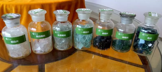 經(jīng)過細(xì)分的各種廢玻璃,從右往左價(jià)值逐漸升高 陳璽撼 攝