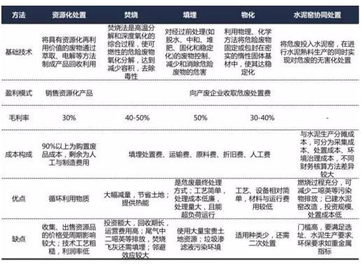 危廢處理方法主要有資源化、無(wú)害化兩類