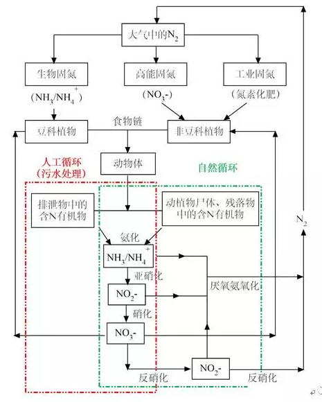 資源/能源回收乃當(dāng)今污水處理技術(shù)發(fā)展的方向,但對(duì)污水全元素回收似乎又有過之而不及。對(duì)污水氮回收技術(shù)總結(jié)與經(jīng)濟(jì)分析顯示,以回收為目的而去除污水中的氮似乎在經(jīng)濟(jì)上不劃算,不如通過傳統(tǒng)硝化/反硝化、甚至是現(xiàn)代厭氧氨氧化(ANAMMOX)技術(shù)將污水中的氮轉(zhuǎn)變?yōu)榈獨(dú)?N2)而回歸大氣,再以工業(yè)合成氨(NH3)方式去制取氮肥,畢竟大氣中的主要成分是N2(78%),且存在無消耗殆盡之虞的氮再生循環(huán)。