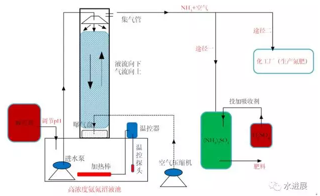 因此,研究人員將污水氮回收的視野轉(zhuǎn)向氣態(tài)回收,即,形成NH3后去生產(chǎn)氮肥,以減少工業(yè)合成氨的成本。其中,最具代表性的技術(shù)就是氨氮吹脫法。