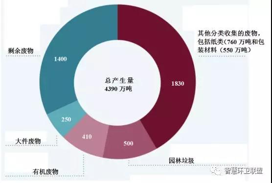 圖2.德國(guó)2013年時(shí)的城市固廢組成情況(單位:萬噸)