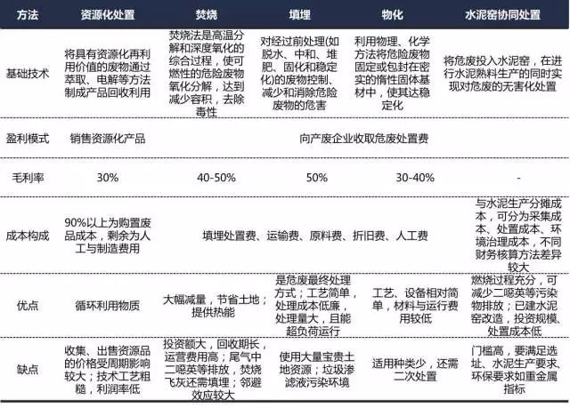 危廢處理方法主要有資源化、無害化兩類