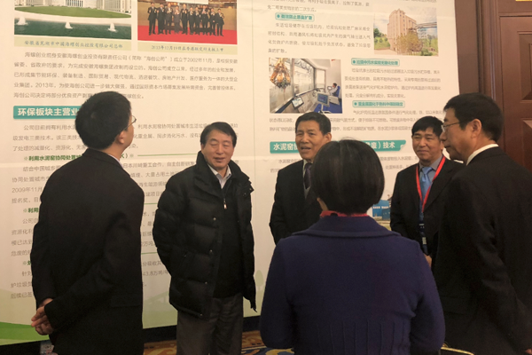 中國(guó)建筑材料聯(lián)合會(huì)、水泥協(xié)會(huì)喬龍德會(huì)長(zhǎng)和科技部社會(huì)發(fā)展科技司鄧小明副司長(zhǎng)參觀海螺創(chuàng)業(yè)展板