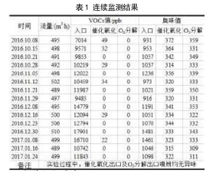 目前,整套廢氣處理工藝已經(jīng)連續(xù)正常運(yùn)行4個(gè)月,通過(guò)連續(xù)監(jiān)測(cè)處理效果表明,處理站周邊基本無(wú)異昧,排放的