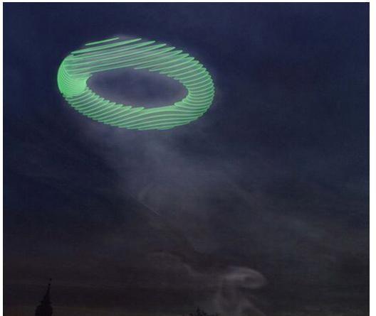 每當(dāng)有一噸化石燃料產(chǎn)生的二氧化碳排放到空氣,煙囪會(huì)形成一個(gè)直徑30米的煙圈,到了晚上也會(huì)有激光投射反應(yīng),提醒人們注意環(huán)保。