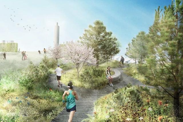 此次滑雪場公園設(shè)計(jì)也基本出爐,發(fā)電廠屋頂斜坡有88米高,設(shè)置了3條滑雪道,總長度超過1500米,還設(shè)了180米速滑挑戰(zhàn),最陡的地方足有45°。