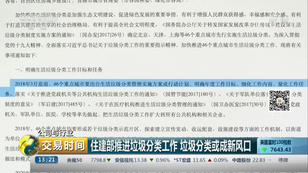 隨著2017年成為環(huán)保政策爆發(fā)年之后,環(huán)保板塊活躍度一度攀升,其中2017年7月18日至10月13日,節(jié)能環(huán)保指數(shù)上漲17.09%,跑贏同期上證綜指10.35個(gè)百分點(diǎn)。2017年底,住建部發(fā)文要求加快推進(jìn)46個(gè)重點(diǎn)城市的垃圾分類工作。那么垃圾的分類回收、處理會(huì)給企業(yè)帶來(lái)哪些新的商機(jī)呢?
