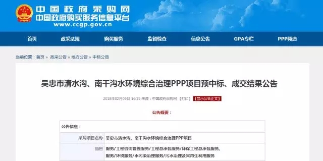 根據(jù)寧夏回族自治區(qū)公共資源交易網(wǎng)發(fā)布的《吳忠市清水溝、南干溝水環(huán)境綜合治理PPP項目預(yù)中標(biāo)、成交結(jié)果公告》,博天環(huán)境集團(tuán)股份有限公司(以下簡稱“公司”)確定為吳忠市清水溝、南干溝水環(huán)境綜合治理PPP項目(以下簡稱“項目”)的預(yù)中標(biāo)人。