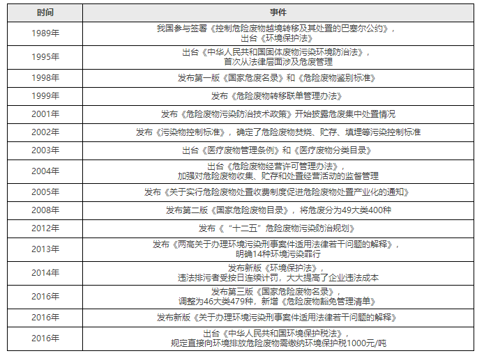 危廢相關(guān)政策體系形成時間順序表