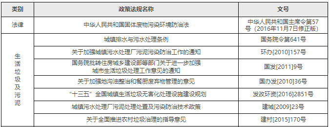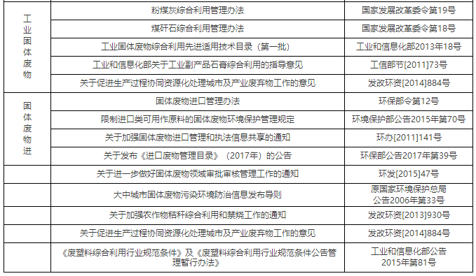 我國現(xiàn)行固體廢物污染防治主要政策法規(guī)