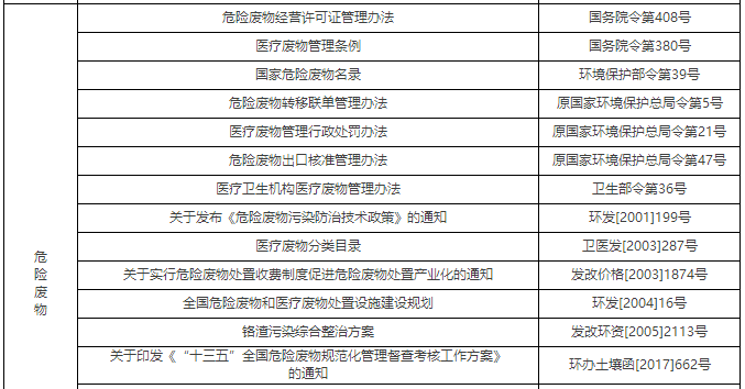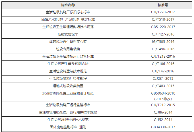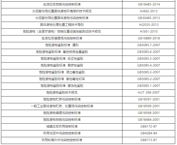 我國現(xiàn)行固體廢物污染防治主要標(biāo)準(zhǔn)規(guī)范