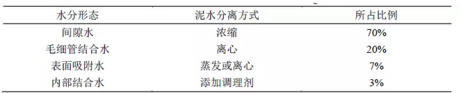 表1 污泥中的水分分布