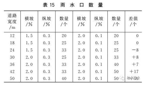 道路坡度調整表14為道路縱坡為0.1%時的雨水口最小布置間距(滿足表13漫幅要求)。