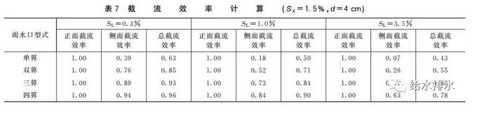 (2)單方向縱坡坡段的雨水口,增加其數(shù)量將提高雨水口正面攔截速度和側面截流效率,但對雨水口總截流效率提升作用有限,而我國標準圖集推薦泄水能力隨箅子數(shù)量增加而快速增加(見表7)。