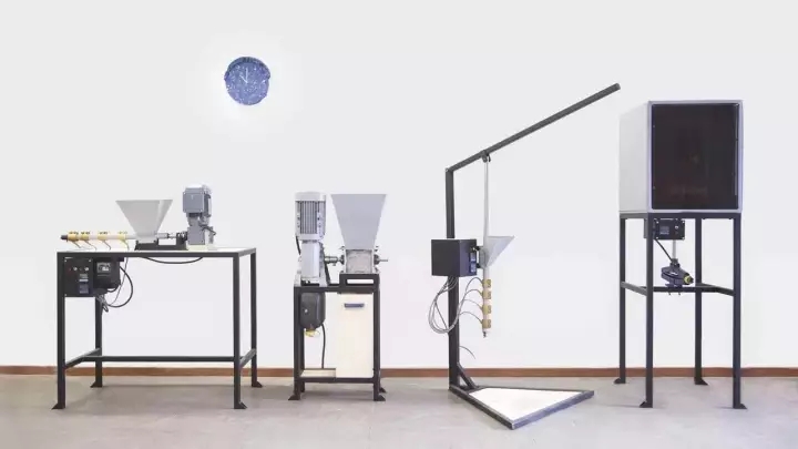接下來(lái),見(jiàn)證奇跡的時(shí)刻就到了!你只需要將塑料碎片倒進(jìn)壓縮機(jī)中,塑料就會(huì)自動(dòng)加熱,然后你把它們壓入模具。