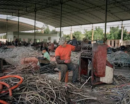 廣東清遠(yuǎn)市數(shù)千名工人正在幫助分離電纜中的不同材料