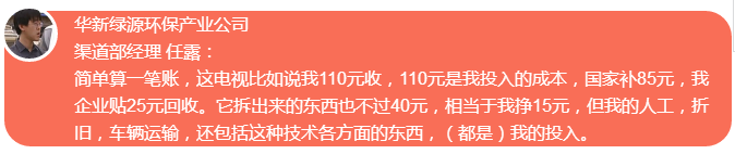 事實(shí)上,從2012年7月開始,國(guó)家就已經(jīng)對(duì)正規(guī)電子垃圾拆解企業(yè)進(jìn)行35—85元不等的財(cái)政補(bǔ)貼,但幾年的時(shí)間過去,這一行業(yè)卻沒有出現(xiàn)預(yù)期的良性發(fā)展。