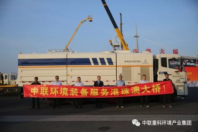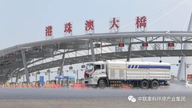 ▲中聯(lián)環(huán)境污水循環(huán)洗掃車將擔負起守護港珠澳大橋的光榮使命
