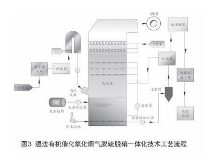 濕法有機催化氧化煙氣脫硫脫硝一體化技術工藝流程見圖3。