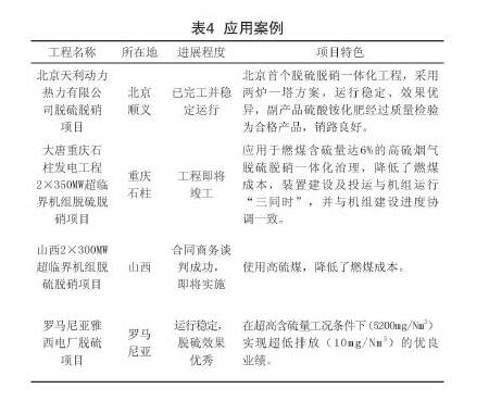 該工藝具有脫硫(達99%以上)、脫硝(可達80%以上)、脫重金屬(達90%)、二次除塵(達60%以上)等多種煙氣減排效果。具有良好的經(jīng)濟效益和推廣應用價值。濕法有機催化氧化煙氣脫硫脫硝一體化工程應用案例見表4。