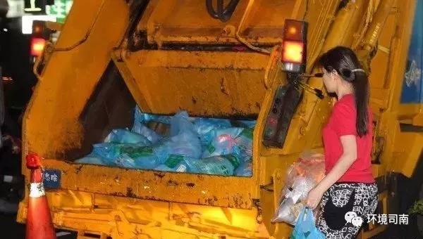 臺(tái)灣家庭主婦出門(mén)處理垃圾?!吨聬?ài)麗絲》和《少女的祈禱》兩首樂(lè)曲是垃圾車(chē)的標(biāo)志,聽(tīng)到這歌的旋律就提醒你可以去倒垃圾了。視覺(jué)中國(guó)圖