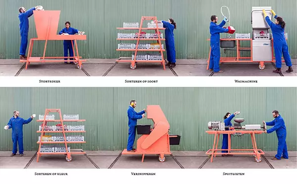 Bureau SLA 和Overtreders W 是兩家總部位于阿姆斯特丹的設(shè)計公司,它們正在把塑料垃圾轉(zhuǎn)變?yōu)閸湫碌慕ㄖ牧??!爸腔鄣牡图夹g(shù)等同于嶄新的高技術(shù)”正是他們的設(shè)計理念。 “美麗塑料車間項目”是獨(dú)一無二的創(chuàng)新項目,由建筑師和設(shè)計師合作,把塑料垃圾制作成可用的建筑外立面材料。這一創(chuàng)新團(tuán)隊認(rèn)為世上不存在廢物,除了制造時被賦予的功能,任何物品都有更多的功能,塑料尤其如此。