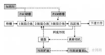 圖2磁混凝沉淀工藝流程圖